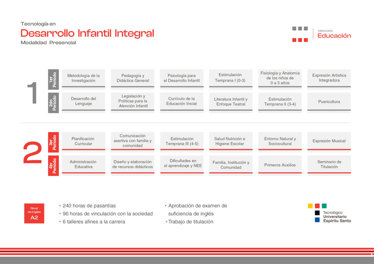 Si aceptas el reto de vincularte a la Educación, si eres amantes de los niños y te interesa construir una imagen positiva en niños de 0 a 5 años, estás en el lugar adecuado. El Tecnológico Universitario Espíritu Santo, te abrirá las puertas para formarte como un profesional competente para desempeñarte en la formación y desarrollo de procesos que potencien su pensamiento y actitudes, permitiendo que se sientan amados, protegidos y valorados; empezándose a auto valorarse como sujeto y como parte de una cultura; que sepan participar e interactuar con los otros, con las diferentes culturas y con la naturaleza; aprender en su lengua materna y ser capaces de comunicarse.