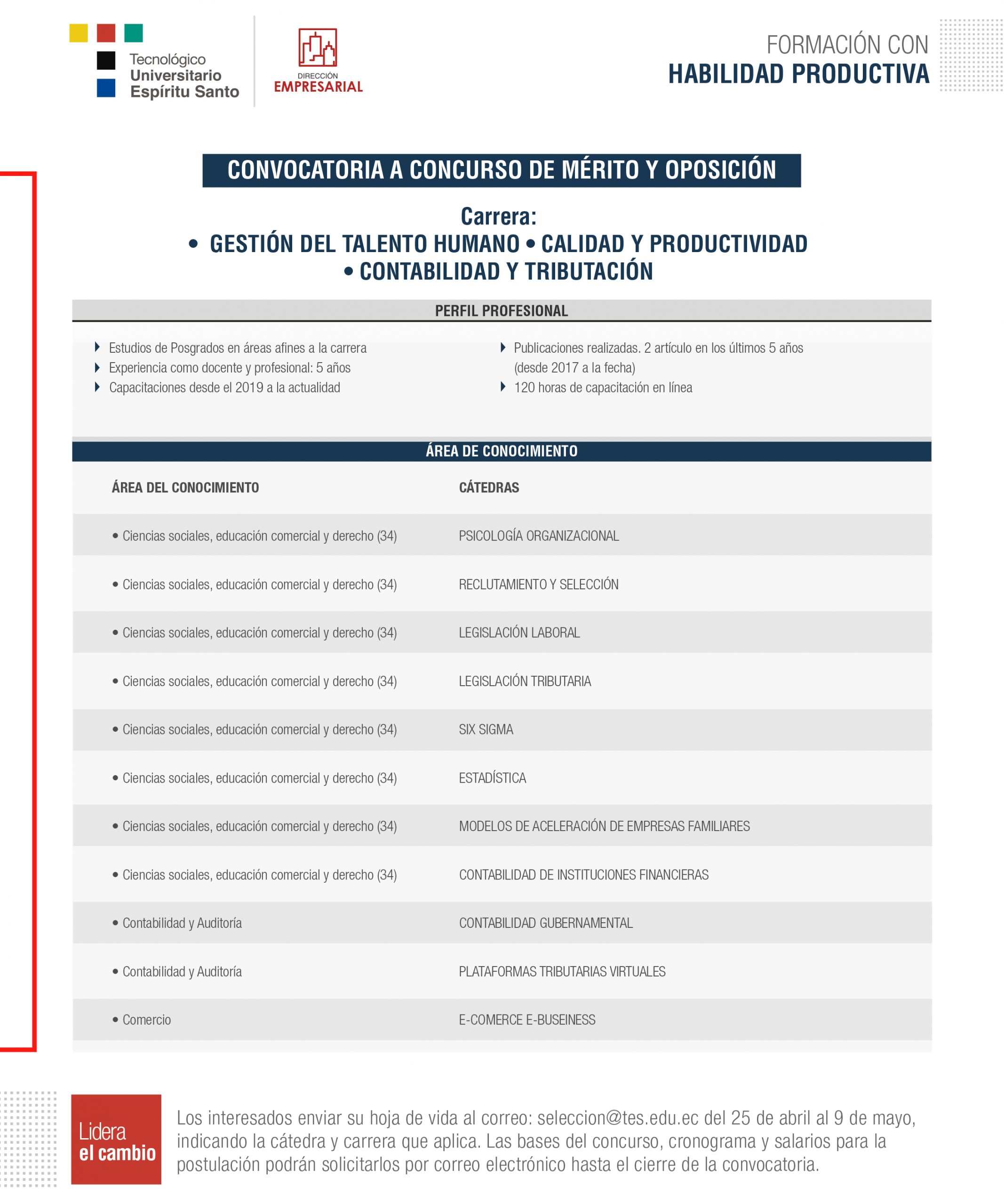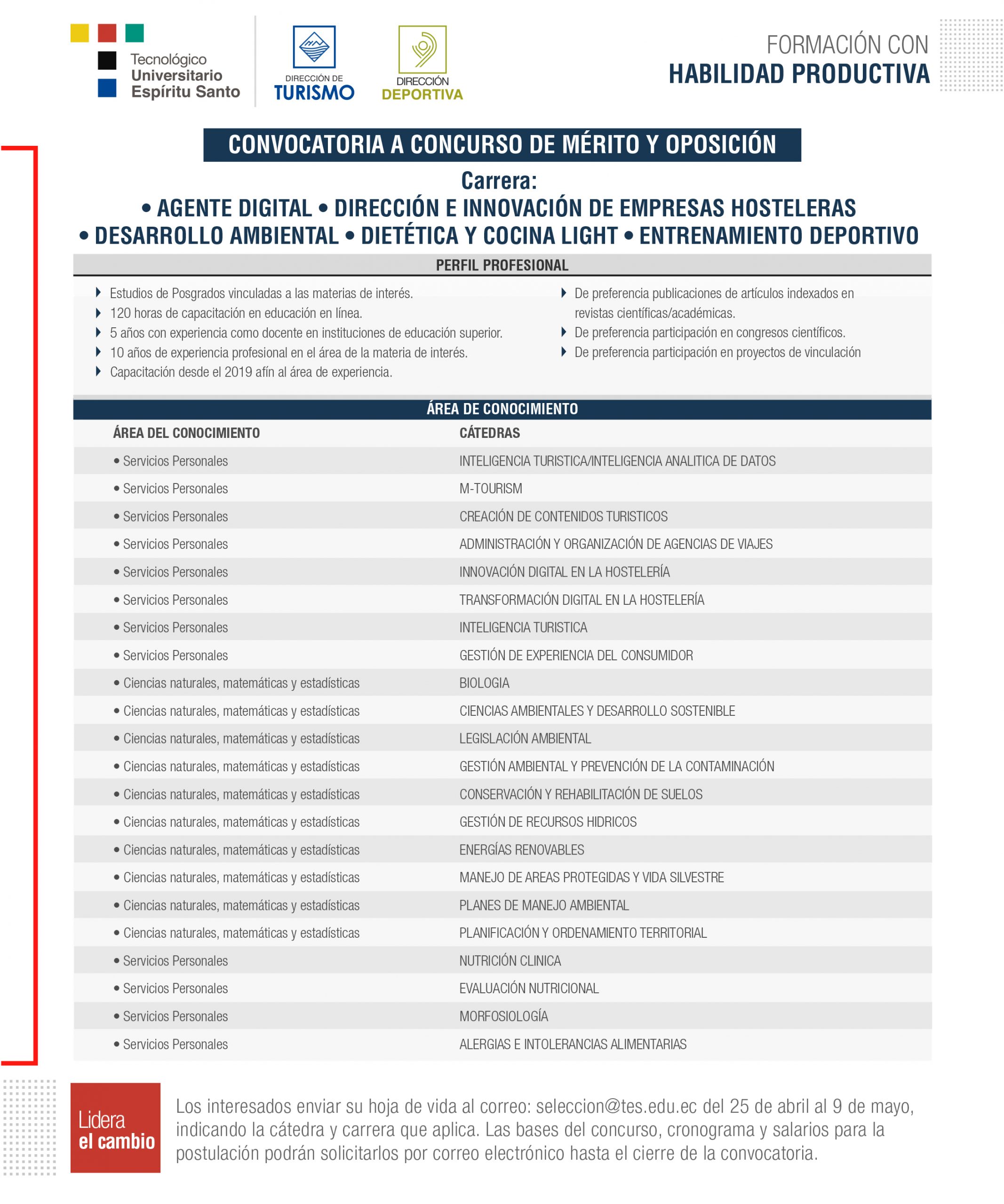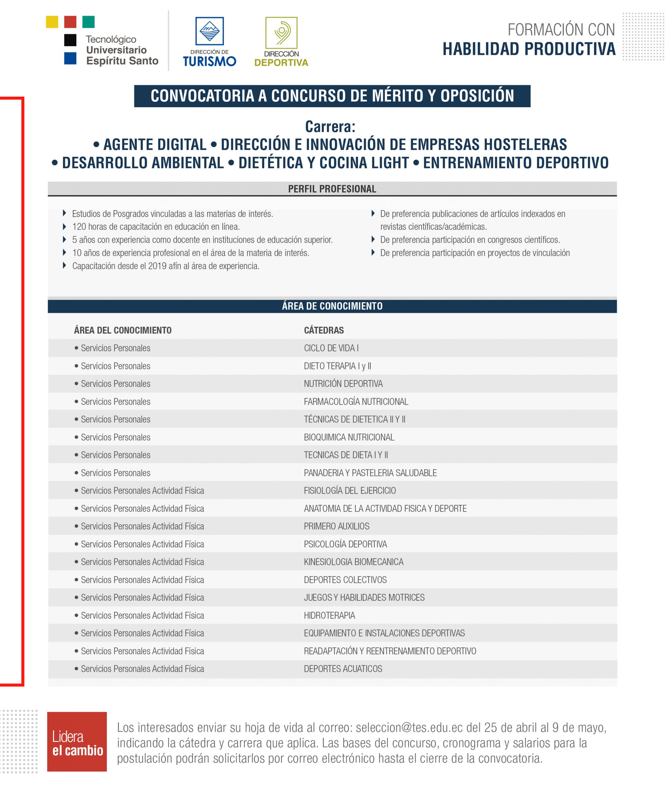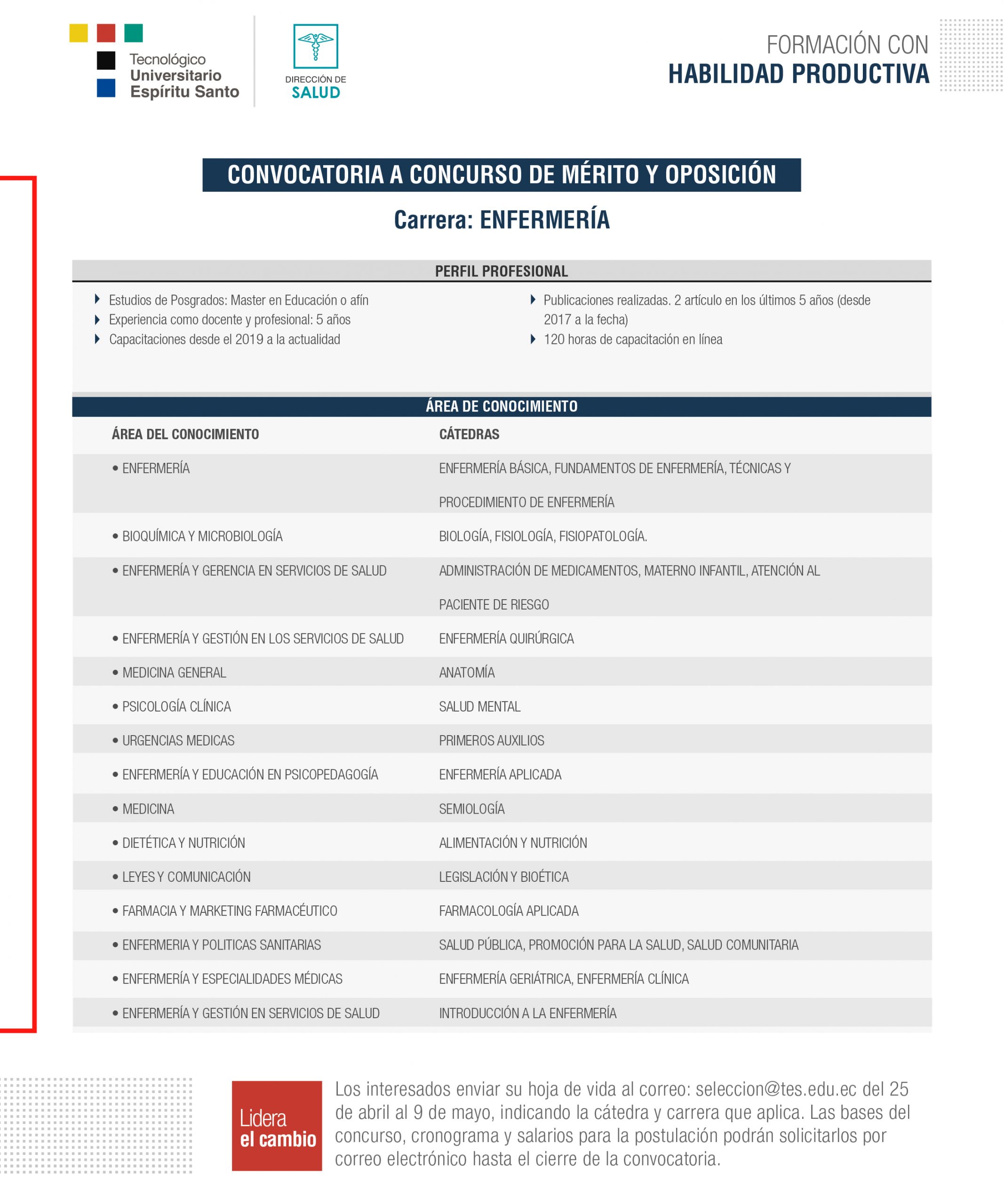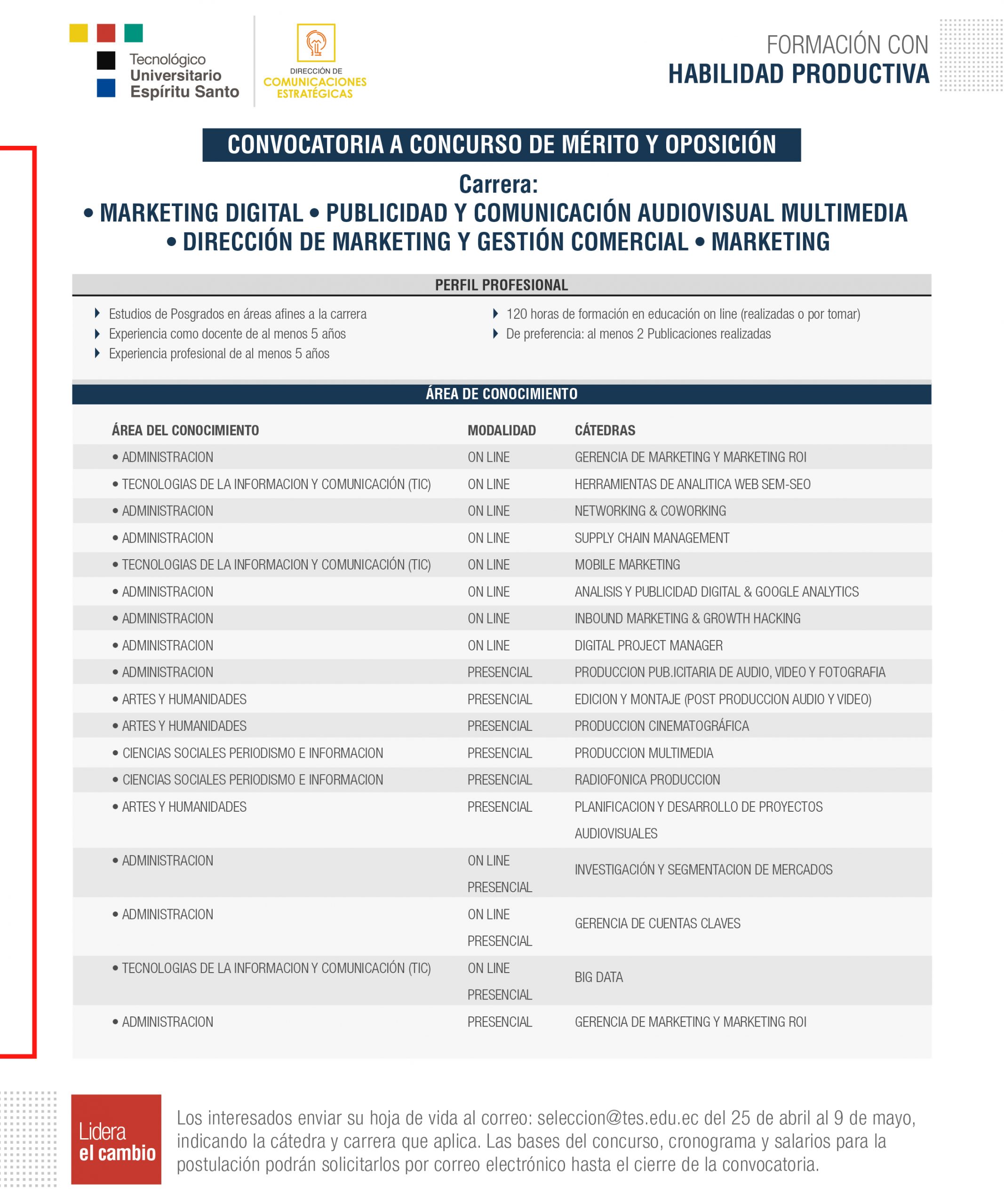 Convocatoria por dirección de carrera